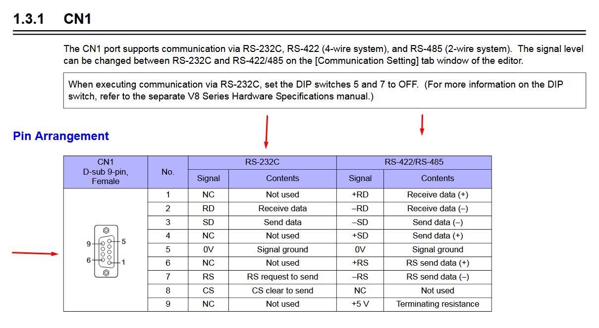 HMI Fuji Electric Monitouch V8 V9 Series CN1 DB9 Connector RS232C