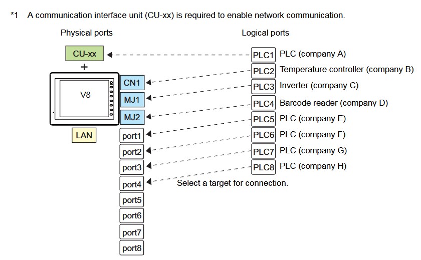 CN1 Connection PLC, temperature controller, inverter, servo, barcode reader