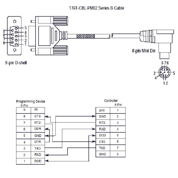 1761-CBL-PM02 Serial 9-pin D-shell to 8-pin mini DIN cable