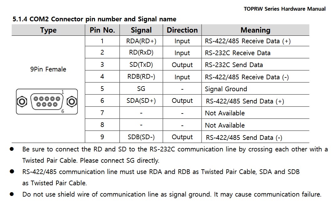 M2I HMI TOPRW 0700WD Touch Panel COM2 Connector DSUB9 RS-232C/422/485 Serial Comm. with PLC