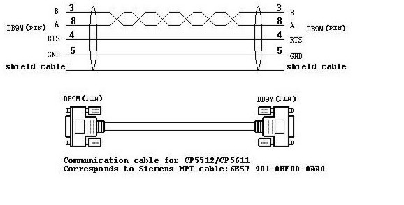 Connection cable RS485-Siemens S7-200 - SIMATIC HMI Touch Panel MP 370