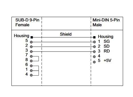 Interface: Round Mini Din 5 Pin Male – RS232 DB9 9 Pin Female