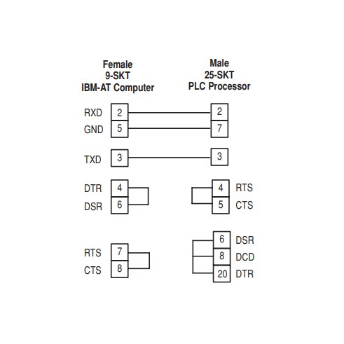 Rắc cắm kết nối Computer và Programming Terminal: DB9 9 Pin Female có đấu nhảy nội bộ sợi cáp (đấu chập chân kết nối)