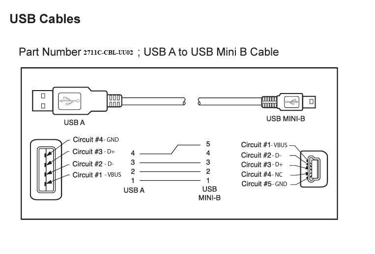 Wiring diagram USB to Mini USB 5 Pin pinout 2711C-CBL-UU02