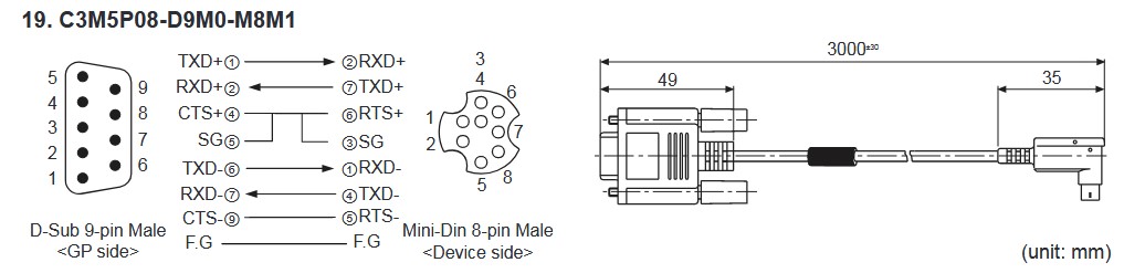 Loại sản phẩm: Cáp lập Trình C3M5P08-D9M0-M8M1 Dài 3M Communication Cable