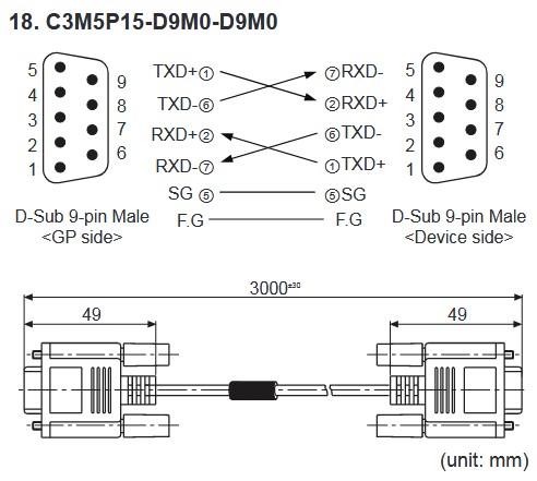 Cáp lập Trình C3M5P15-D9M0-D9M0 Dài 3M Communication Cable