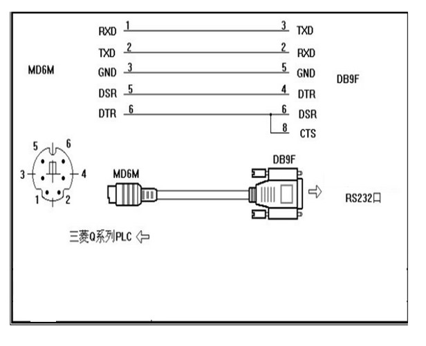 Mitsubishi Q Series programming cable pinout – PLC Cable RS232
