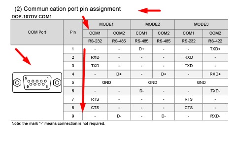 Communication Port Pin Assignment Delta HMI DOP-107DV COM Port
