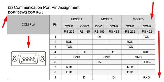 Communication Port Pin Assignment Delta HMI DOP-103WQ COM Port