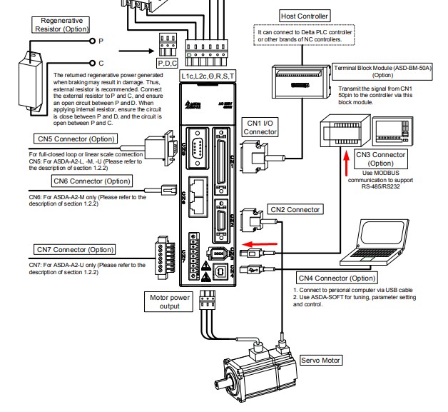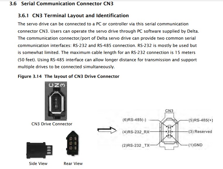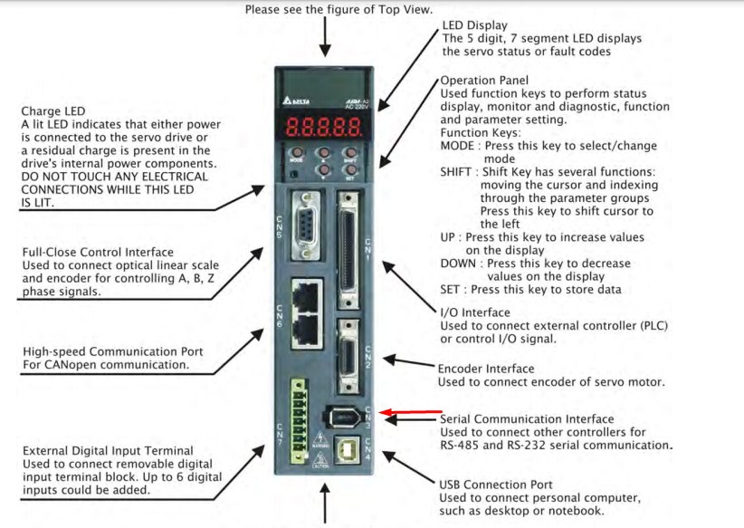 Đầu nối CN3. Người dùng có thể vận hành ổ đĩa servo thông qua phần mềm PC do Delta cung cấp.