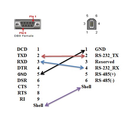Rắc cắm kết nối Computer B: RS232 DB9 Female (thuật ngữ kỹ thuật đầu kết nối cổng Com 9 chân hai hàng chân cắm âm)