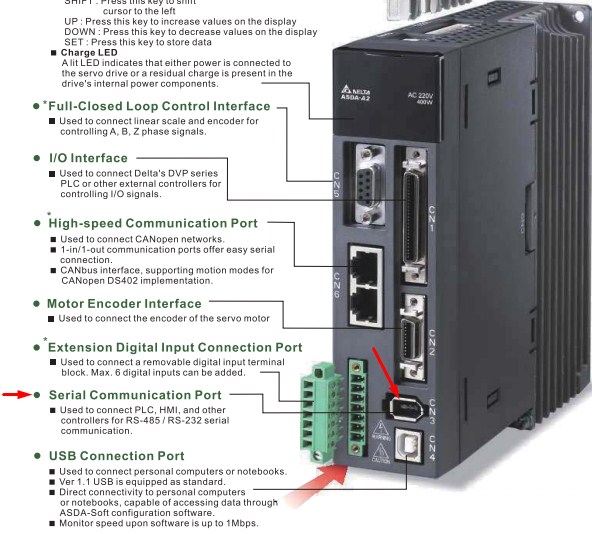 Đầu nối / cổng giao tiếp của ổ đĩa servo Delta có thể cung cấp hai nối tiếp chung