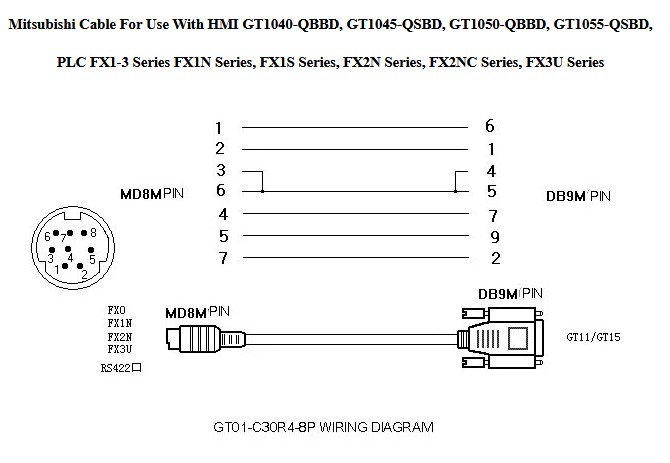 RS422 Communication Cable HMI Mitsubishi GOT1000/GT11/GT12/GT15/GT105 to PLC Mitsubishi Fx Series