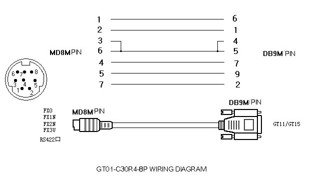 Cáp Lâp Trình GT01-C30R4-8P Mitsubishi Cable RS-422 5M For Use With HMI GT1040-QBBD, GT1045-QSBD, GT1050-QBBD, GT1055-QSBD, PLC FX1-3 Series