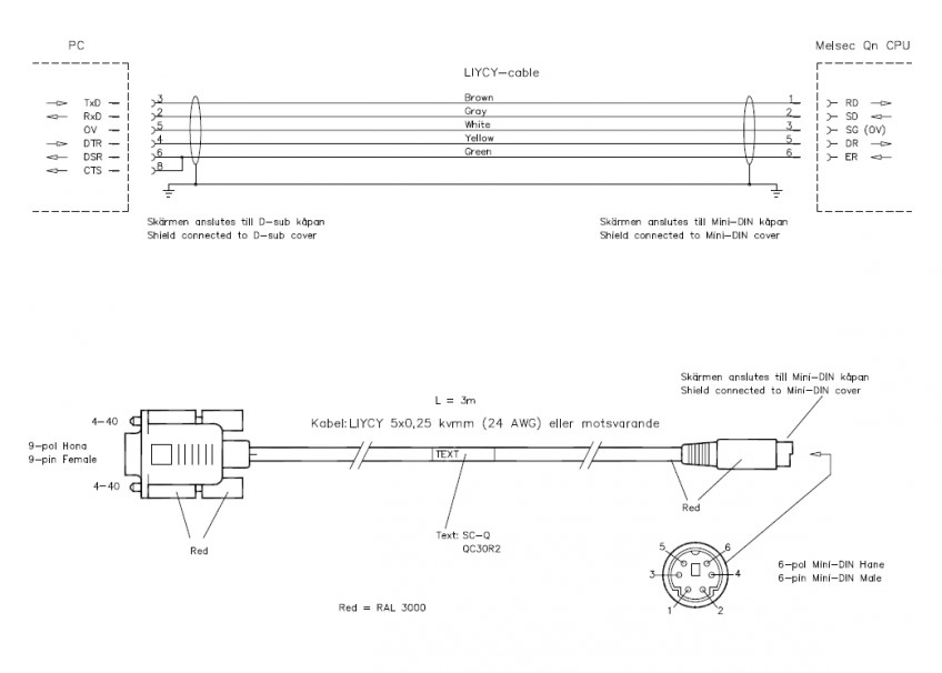 Rắc cắm Màn Hình Mitsubishi HMI GT GOT1000 Series: Mini Din 6 Pin Male (PS/2 6 Pin Male)