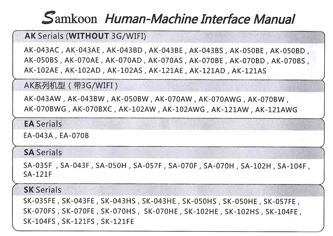 HMI Samkoon SK series touch screens