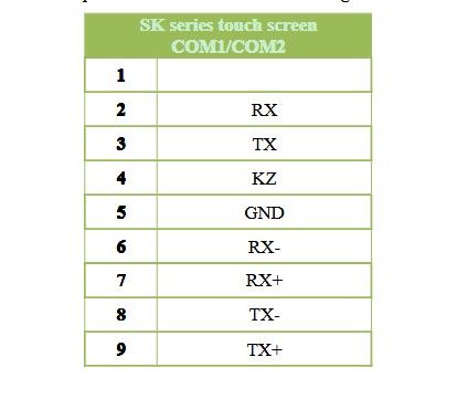 Pin definition of serial port (COM1/COM2) for SK series touch screen