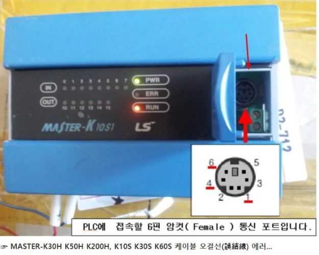 SK series touch screen uses DB9F connector. LG Master-K series PLC terminal is MD6M