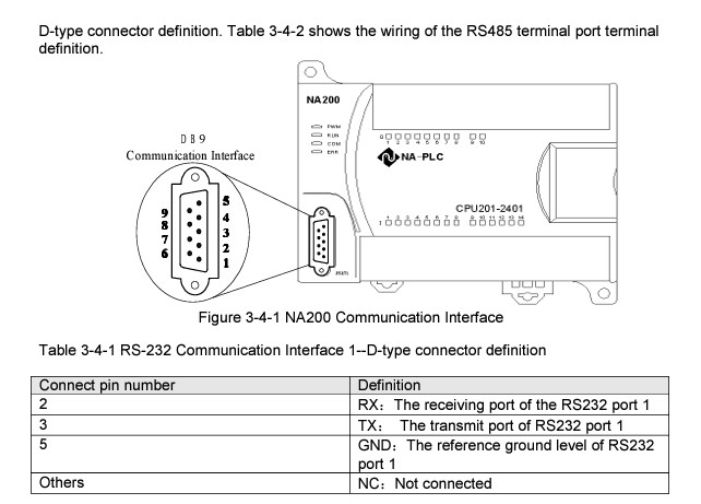 RS232 Communication Cable Nanda NA-200/400 series PLC terminal is DB9M