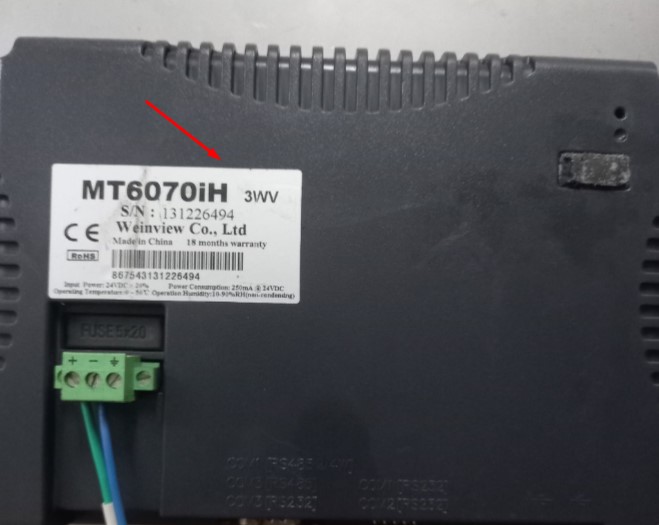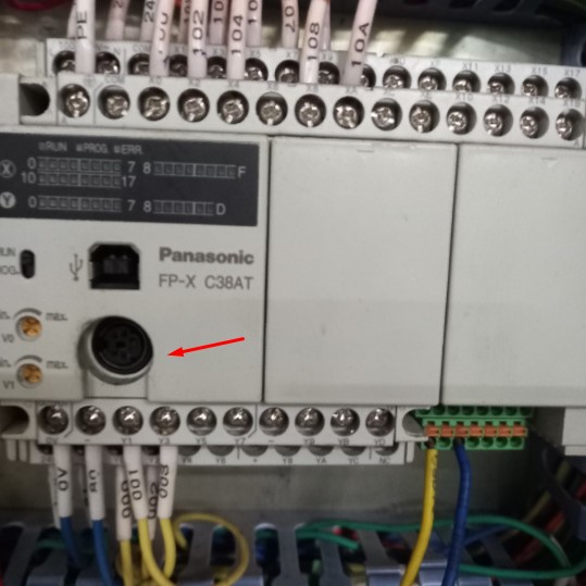 HMI Weintek Weinwiew MT6070iH touch screen uses DB9F connector. PLC Panasonic Panasonic FP-X C38AT Series terminal is MD5M