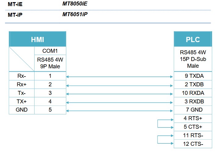 RS485 Communication Cable HMI Weintek Weinwiew MT8050iE/MT6051iP Series to PLC Panasonic Matsushita Nais FP3 CPU Series
