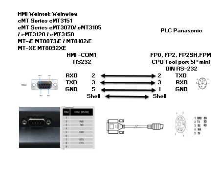 RS232 Communication Cable HMI Weintek Weinwiew to PLC Panasonic FP