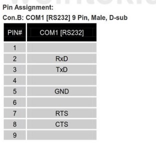 Pin Assignment:COM1 [RS232] 9 Pin, Male, D-sub