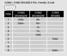 COM2 / COM3 [RS485] 9 Pin, Female, D-sub