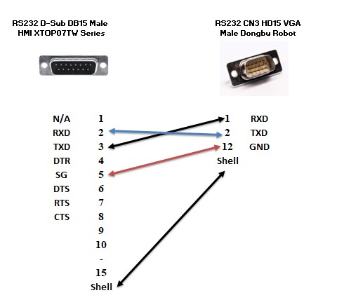 HMI XTOP07TW Series Với Dongbu Robot IMS-J-1000 Cable RS232-C D-Sub DB15 Male to HD15 VGA Male