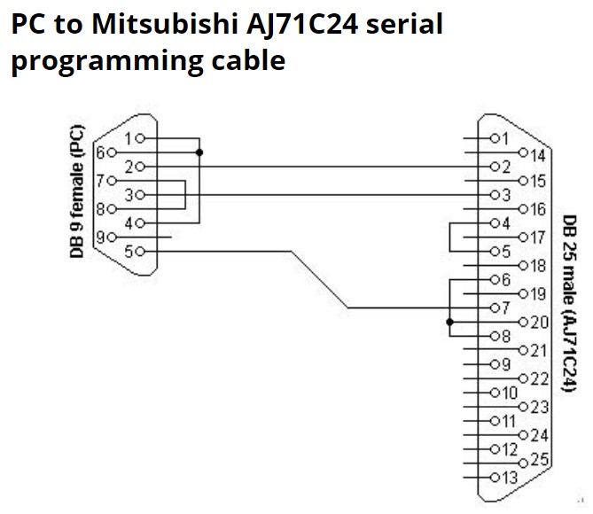 Cáp Lập Trình PC to Mitsubishi AJ71C24 Serial Programming Cable RS232 DB9 Female to DB25 Male Length 1.3M