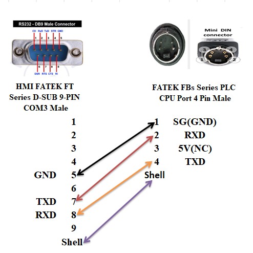 HMI/ FATEK/ FT Series COM1 AND COM3 Communication Port