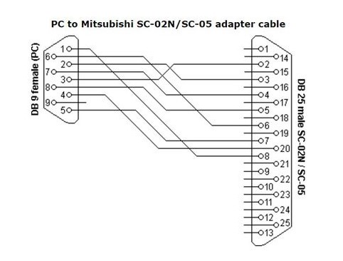 Cáp Lập Trình PLC Mitsubishi PC to Mitsubishi SC-02N/SC-05 Cable RS232 DB9 Female to DB25 Male Grey Length 1.3M