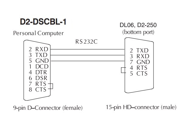 Cáp Lập Trình PLC PROGRAM KOYO D2-DSCBL-1 RS232 DB9 Female to VGA 15-Pin Male HD15 For Use With DL06, D2-250-1 And D2-260 CPUs And D0-DCM Communication Module Black Length 1.8M