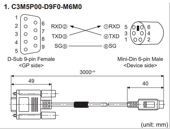 Loại sản phẩm: Cáp Lập Trình Programming Cable C3M5P00-D9F0-M6M0 Kết Nối Autonics HMI GP/LP Series LS Với PLC LG Master-K10S1 K14P1-DRS RS232 Communication 6 Pin Mini DIN Male to DB9 Female Black Length 3M