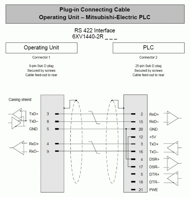 Cáp Lập Trình Siemens 6XV1440-2RH32 Cable RS422 Length 3.2M For Siemens SIMATIC Operator Interface Panel TD/OP to Electric PLC Mitsubishi FX2/FX2C/QnA/ACPU