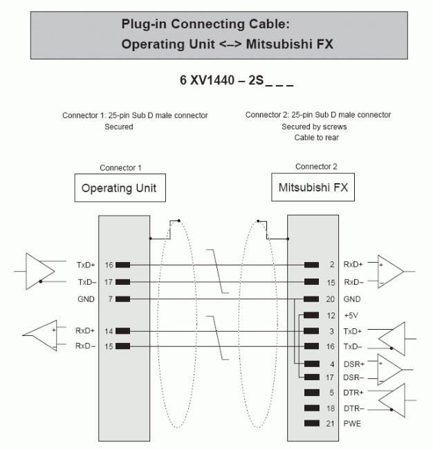Cáp Lập Trình Siemens 6XV1440-2SH32 Cable RS422 Length 3.2M For Siemens Operator Panel TD10, TD20, OP30 OP20/240 to Electric PLC Mitsubishi FX2/FX2C/QnA/ACPU