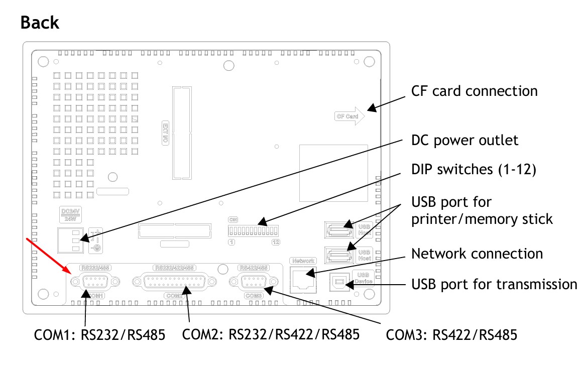 Connector 1: DB9 Male (MI Hitech PWS6A00T-P PWS Series)