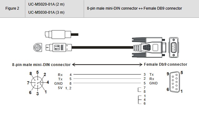 8-Pin Male Mini-DIN Connector to Female DB9 Connector