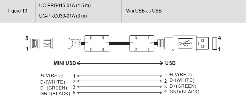 Cáp UC-PRG015-01A là cáp giao tiếp được sử dụng để kết nối Delta PLC DVP Series Mini USB với máy tính. Cáp có một đầu nối ở một đầu cắm vào cổng trên USB Computer và một đầu nối ở đầu kia dành riêng cho dòng Delta PLC DVP Series Mini USB được liệt kê. Cáp được sử dụng để truyền dữ liệu và chương trình giữa Delta PLC DVP Series Mini USB và PC, và nó thường được sử dụng cho mục đích lập trình, gỡ lỗi và truyền dữ liệu.