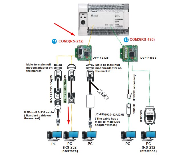 Cáp UC-PRG030-10A là cáp giao tiếp được sử dụng để kết nối Delta PLC DVP Series RS232 DB9 Connector với máy tính. Cáp có một đầu nối ở một đầu cắm vào cổng trên RS232 DB9 Computer và một đầu nối ở đầu kia dành riêng cho dòng Delta PLC DVP Series RS232 DB9 Connector được liệt kê. Cáp được sử dụng để truyền dữ liệu và chương trình giữa Delta PLC DVP Series RS232 DB9 Connector và PC, và nó thường được sử dụng cho mục đích lập trình, gỡ lỗi và truyền dữ liệu.