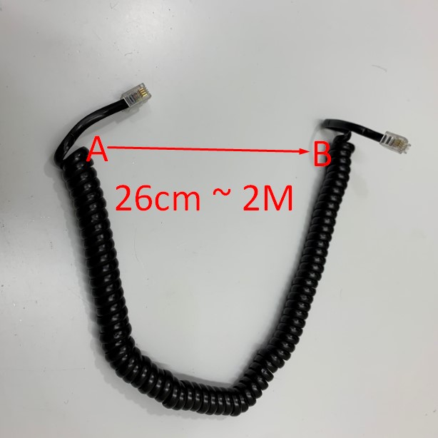 Cáp Line Điện Thoại Flat Coiled Telephone Cord RJ9 To RJ9 Black Length 2M
