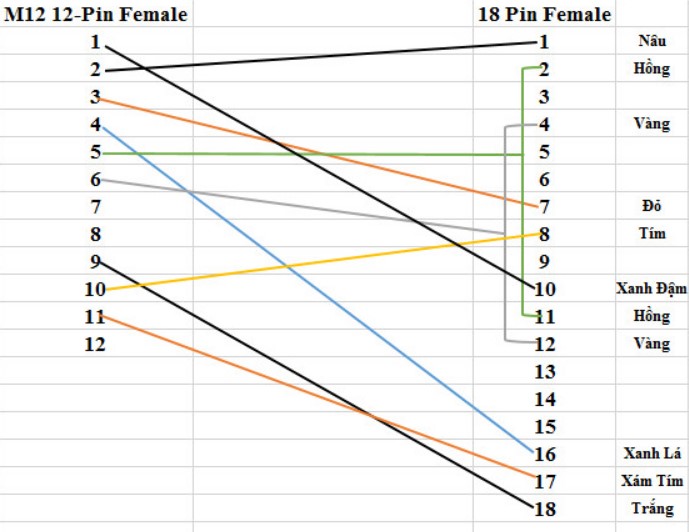 Cáp M12 12 Pin Female ESCHA Power Cable to 18 Pin Dài 2.5M 8ft Part Number: AL-WAKSE12.024-5/S3909 8062493 2263/4100064 Cable Original in Korea
