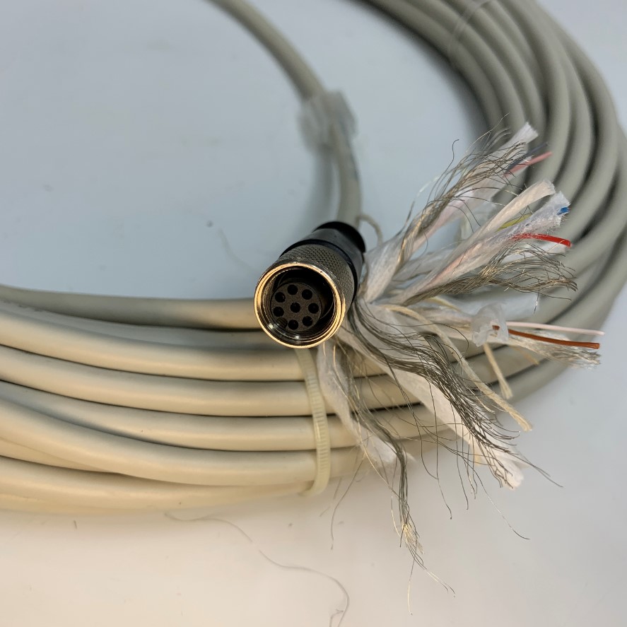 Cáp M12 8 Pin A-Code Female to 8 Core Bare Wire Open End Dài 20M 66ft Shielded Cable GAS 4x2x0.14 mm² OD 6.5mm Gray For Cognex Industrial Barcode Camera Reader