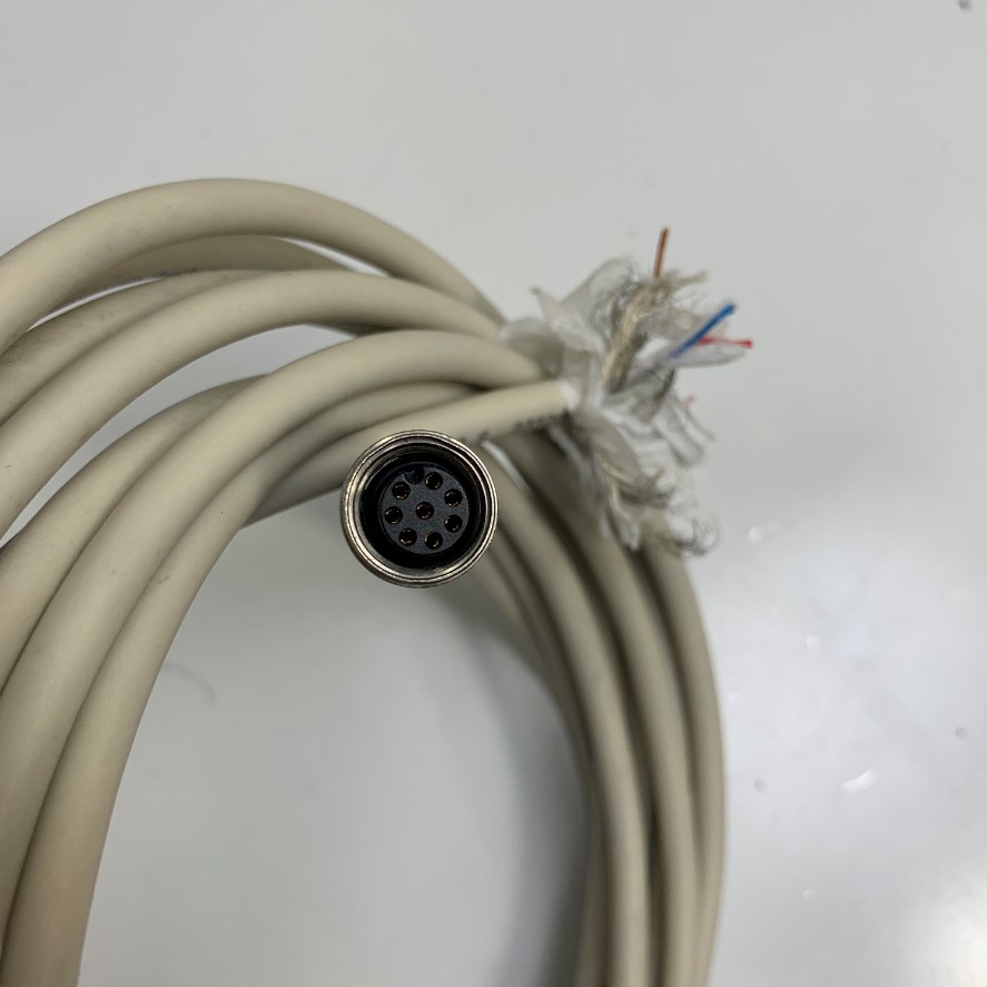 Cáp M12 8 Pin A-Code Female to 8 Core Bare Wire Open End Dài 4.5M 15ft Shielded Cable GAS 4x2x0.14 mm² OD 6.5mm Gray For Cognex Industrial Barcode Camera Reader