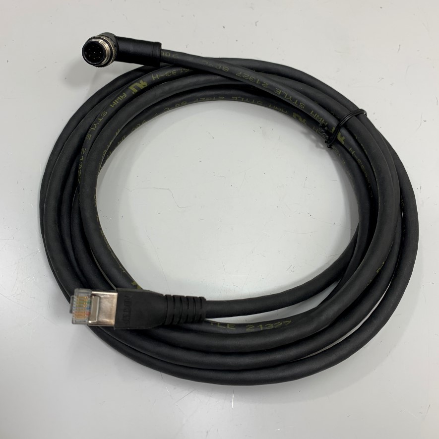 Cáp M12 A-Code 8 Pin Male Right Angle to RJ45 Ethernet Cable Dài 3M 10ft For Cognex Industrial Barcode Camera Reader