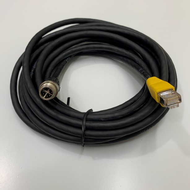 Cáp M12 X-Coded 8 Pin to RJ45 Ethernet Shielded Cable 17ft Dài 5M For Cognex Industrial Camera Network Applications