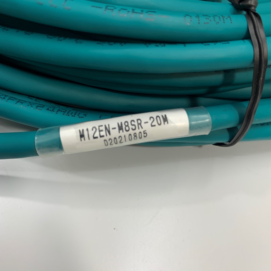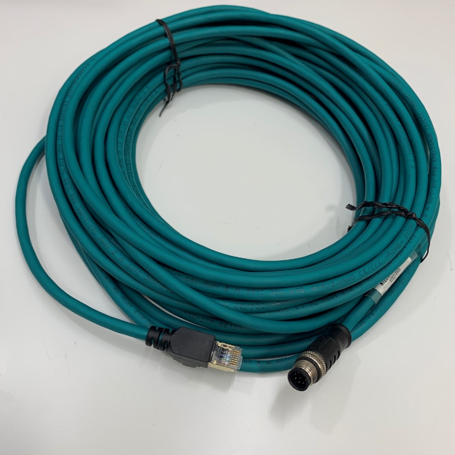 Cáp M12EN-M8SR-20M 65Ft Dài 20M Cable Ethernet COGNEX M12 A-Code 8 Pin Male to RJ45 Green Color PVC