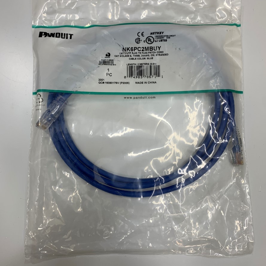 Cáp Mạng Chéo PANDUIT UTP CAT6 RJ45 Patch Cord Crossover Cable Gigabit PVC 24AWG Blue Length 2M For Thiết Bị Công Nhiệp, Viễn Thông Industrial Ethernet Telecommunication