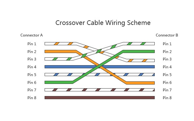 Chuẩn đấu chéo TIA / EIA-568-B: T568B: 1-3 / 2-6 / 3-1 / 4-4 / 5-5 / 6-2 / 7-7 / 8-8