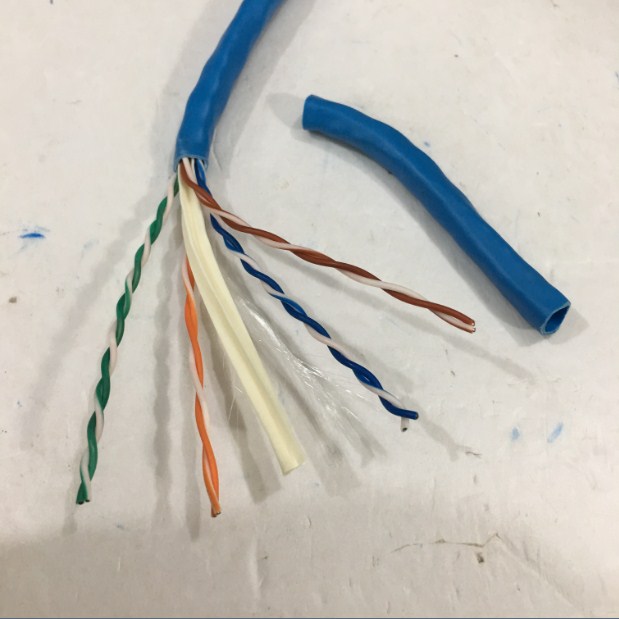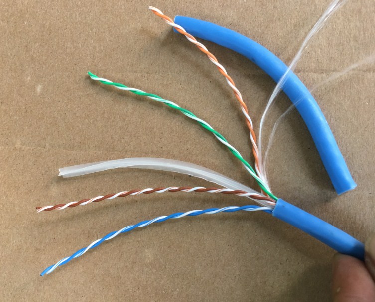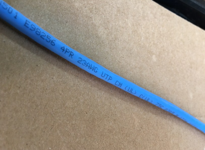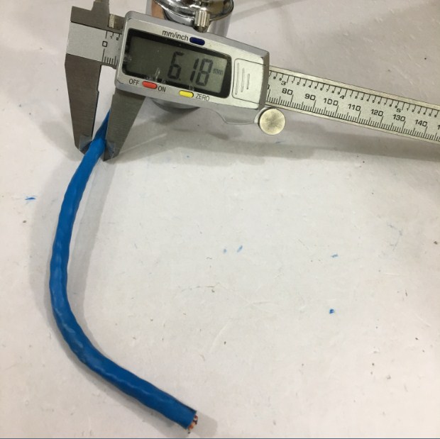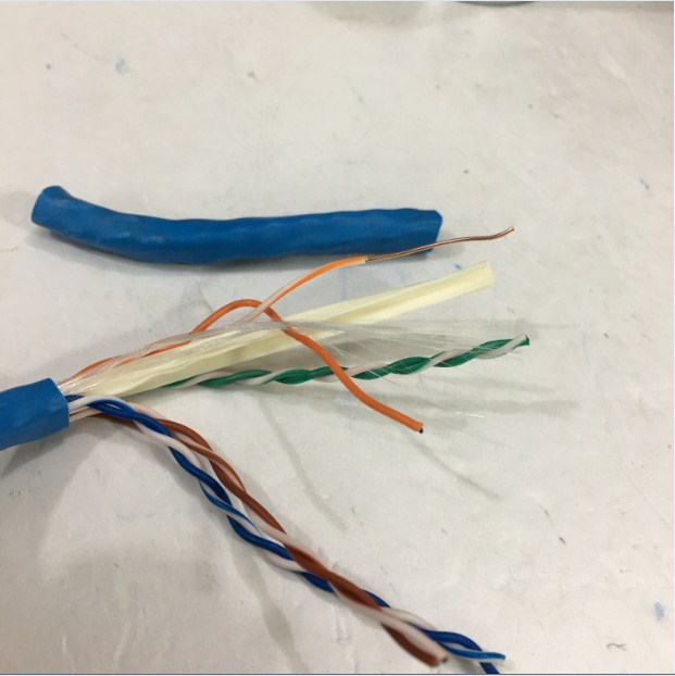 Cáp đồng, loại 6 UTP, CM, 4 đôi, dây dẫn được xây dựng 23 AWG với lớp cách điện PE, xoắn theo cặp, ngăn cách bởi một dải phân cách chéo và được bao phủ bởi một áo khoác PVC, màu xanh.